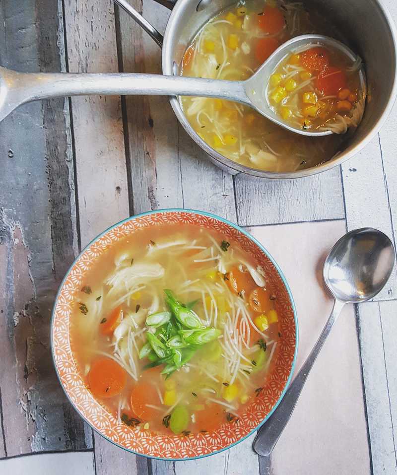 Whether you’re feeling under the weather or simply looking for a warm and nourishing meal – this chicken noodle soup has it all. You can make your own tasty bone broth or substitute for chicken stock.
