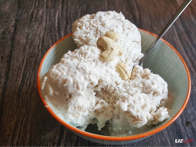 We’ve opted for a mild and creamy coconut flavour, but you could try any flavours you like including our popular banana and peanut butter ‘ice cream’ sundae recipe.