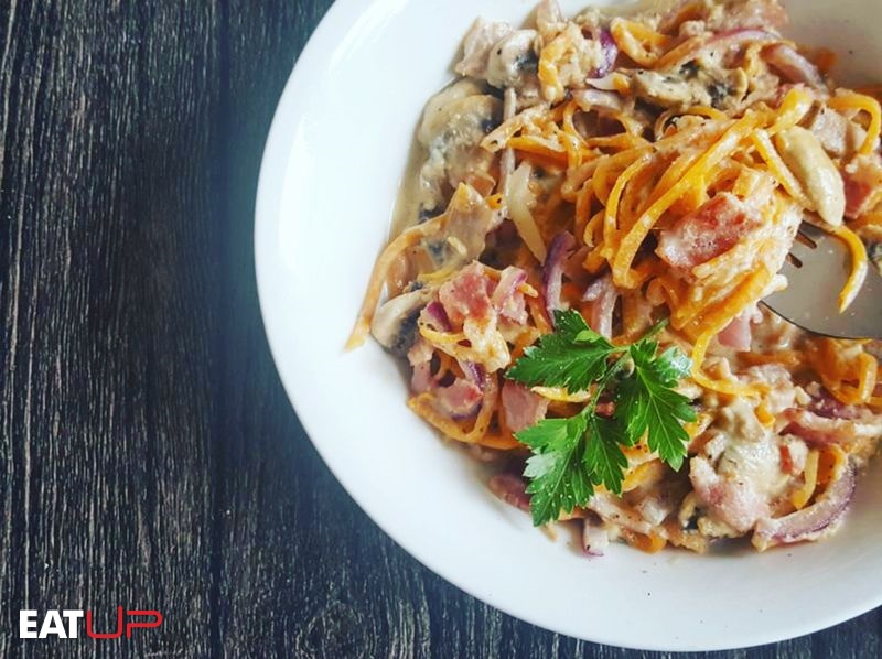 A Light and Easy, Low-Carb Italian Carbonara with Butternut Spaghetti