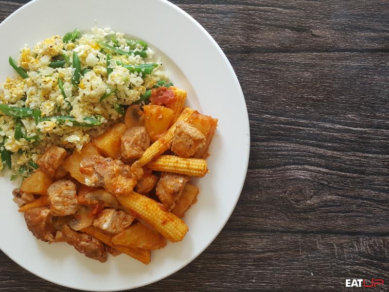 We’ve included baby corn, mushrooms, and green beans in this dish to easily increase your vegetable intake, as well as pairing with our lower carb cauliflower fried ‘rice’.