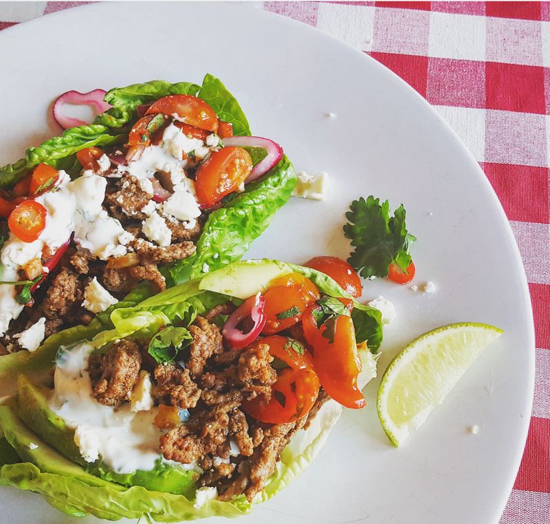 Taco shells traditionally are made using wheat flour, but these are lower carb as weāve switched out the taco shells for gem lettuce ācupsā. If you can spare the extra carbs, then go ahead and make your own taco shells using gluten-free mini tortilla wraps. Perhaps youād like to mix and match.