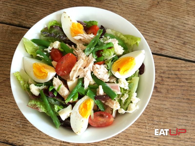 You can keep adding to this salad depending on your favourite toppings – fat-trimmed bacon, a sprinkle of seeds and sliced avocado would all make delicious additions.