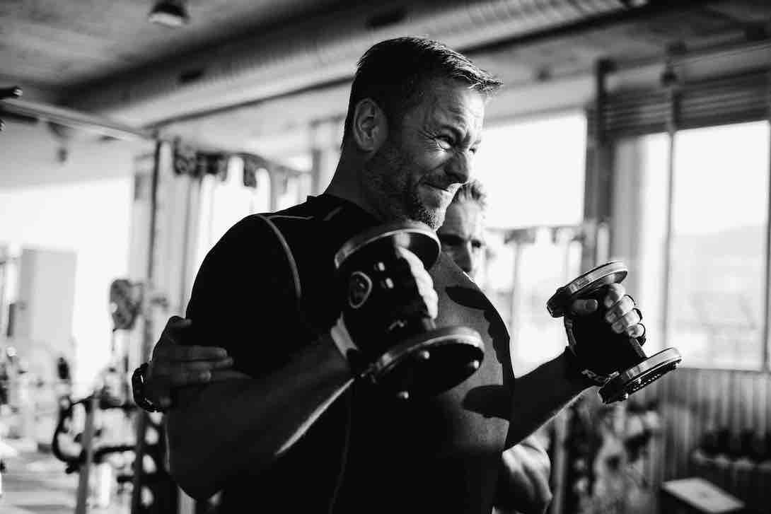 The cheating method involves changing the technique of an exercise to incorporate more muscle mass ,and sometimes momentum, to allow you to continue the set. For example, in a standing barbell curl a slight extension of the lower back will help you to complete the set. As with all these techniques this method should be used with caution and be used at the end of the set not for the entire set as is all too common in most commercial gyms.  (Nick’s note – cheating is not something all personal trainers subscribe to, but in our opinion at UP it is one of the simplest ways to extend the set and further stimulate a positive muscular adaptation.  A word to the wise though, this is NOT a technique I would ever endorse for someone with less than 1 year’s consistent weight training experience unless properly supervised.  Good exercise form is a habit that needs to be rigourously imposed until it is second nature).