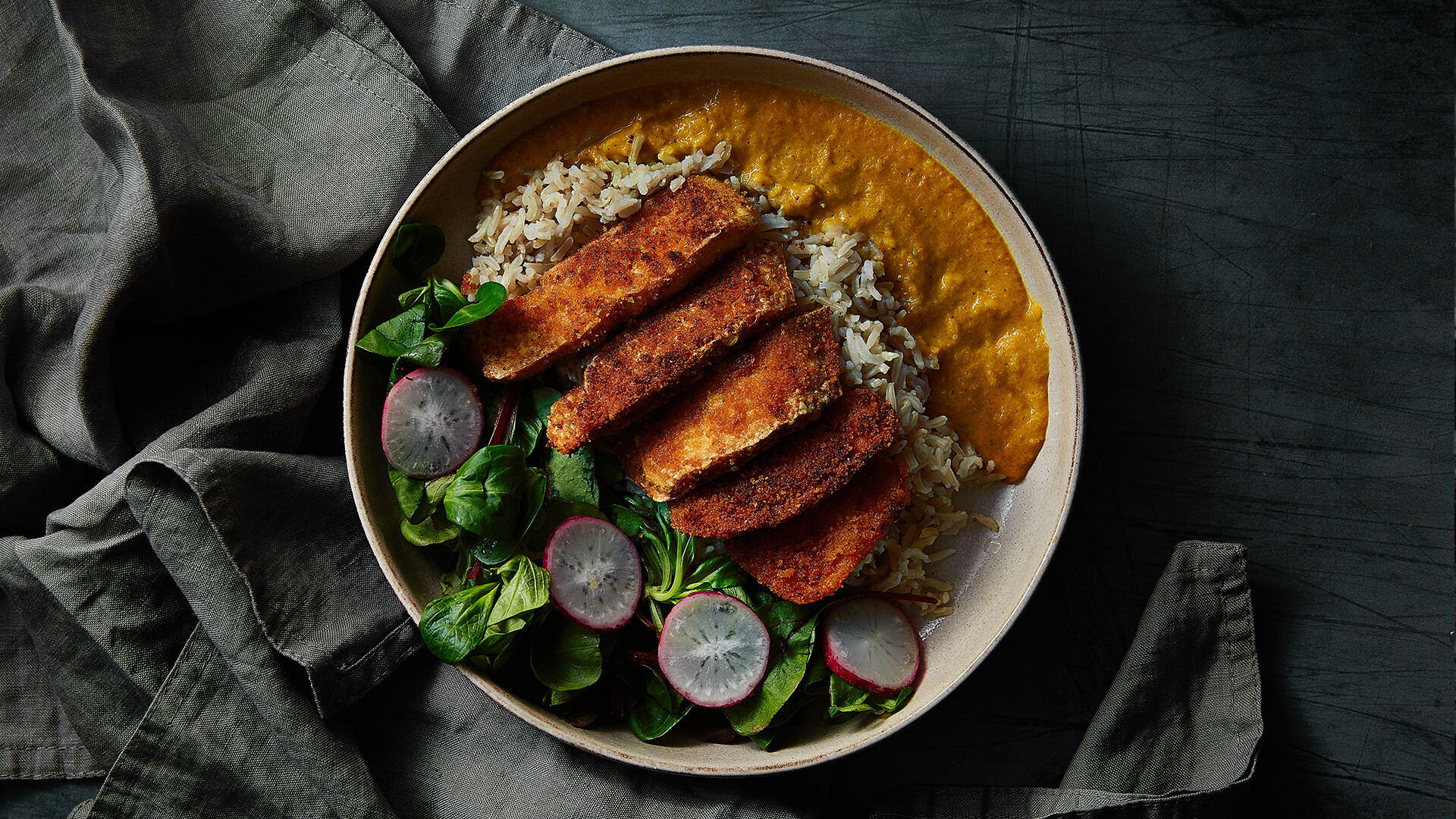 Katsu chicken is a delicious dish with Japanese origins. Crisp, crunchy coated chicken paired with a rich and tangy curry sauce – what’s not to like?
