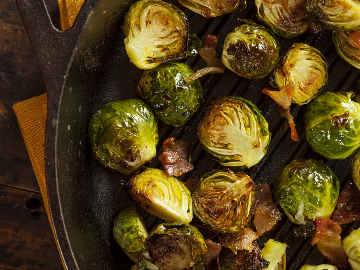 A common pairing for sprouts would be smoked, streaky bacon. However, this is high in saturated fat. In this recipe, weâve made a substitution for turkey bacon to keep the same smoky taste, but with a lower fat content. Hazelnuts add crunch and healthy fats, and pomegranate seeds sweeten this dish with an extra sprinkle of vitamin K.